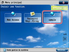 La touche de fonction de la page Web mémorisée dans les Favoris s'affiche sur l'écran Menu Principal.