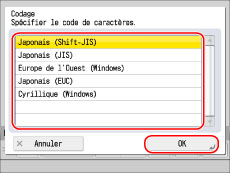 Dans certains cas, il est possible que les réglages choisis pour le codage des caractères ne soient pas visibles, même en appuyant à nouveau sur [Codage] après avoir spécifié les réglages.
