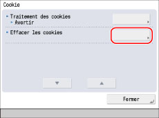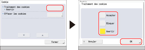 Appuyer sur [Traitement des cookies] → indiquer si la réception de cookies est autorisée → appuyer sur [OK].