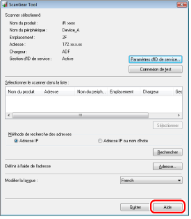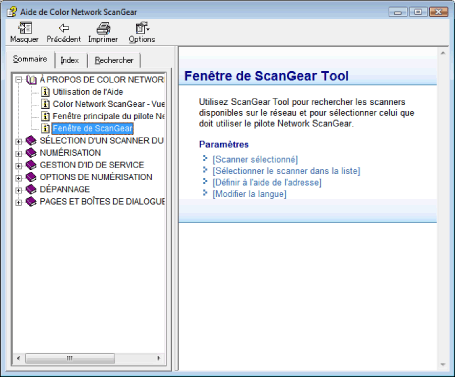 Accès à l'aide en ligne de Color Network ScanGear/Network ScanGear