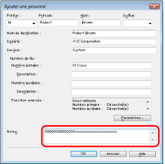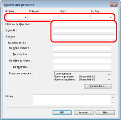 Il est également possible de modifier les adresses de personnes précédemment enregistrées. Pour plus d'informations, cliquer sur [Aide] dans l'angle inférieur droit de la fenêtre du pilote de télécopie pour afficher l'aide en ligne.