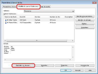 Cliquer sur [Modifier le carnet d'adresses] → [Spécifier un dossier].