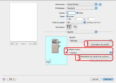 ] situé en regard de [Imprimante] pour afficher tous les réglages dans la boîte de dialogue [Imprimer]. |