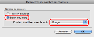 Il est possible d'imprimer en noir et dans une autre couleur spécifiée. Cette fonction n'est disponible que pour le pilote d'imprimante UFR II.