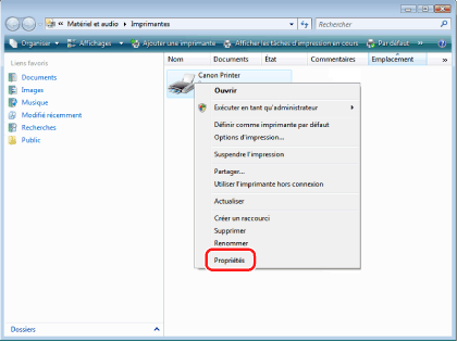 ] (Démarrer) → [Panneau de configuration] → [Imprimante].