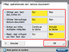 Lorsqu'un document comportant des informations intégrées est lu, ces informations sont détectées et la tâche de lecture est annulée automatiquement.