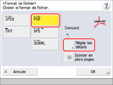 Sélectionner [PDF] → [Régler les détails].