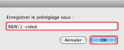 Saisir un nom, "B&W/2-sided" par exemple, dans [Enregistrer le préréglage sous] → cliquer sur [OK].