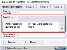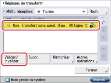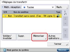 Sélectionner la condition de transfert mémorisée → appuyer sur [Valider/Invalider].