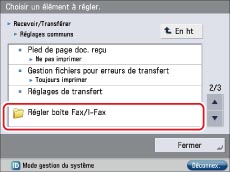 → [Réglages de fonction] → [Recevoir/Transférer] → [Réglages communs] → [Régler boîte Fax/I-Fax].