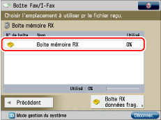 Appuyer sur [Boîte mémoire RX].