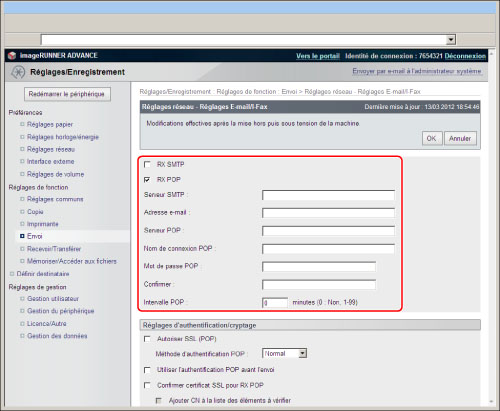 (Ceci réfère à l'intervalle utilisé par la machine imageRUNNER ADVANCE sur le serveur de messagerie pour vérifier les e-mails.) |