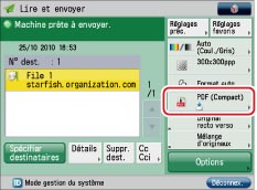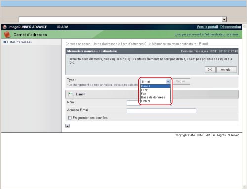 Adresse e-mail obtenue pour la machine imageRUNNER ADVANCE