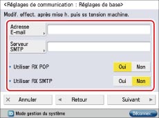 → [Réglages de fonction] → [Envoi] → [Réglages E-mail/I-Fax] → [Réglages de communication].