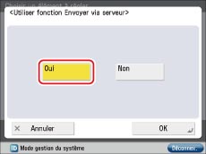 → [Réglages de fonction] → [Envoi] → [Réglages E-mail/I-Fax] → [Utiliser fonction Envoyer via serveur].