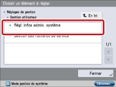 → [Réglages de gestion] → [Gestion utilisateur] → [Régl. infos admin. système].