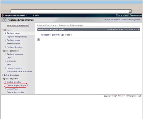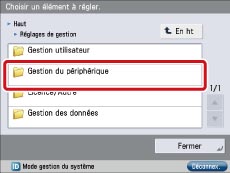 → [Réglages de gestion] → [Gestion du périphérique].