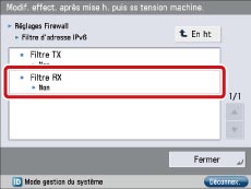 Appuyer sur [Filtre d'adresse IPv6] → [Filtre RX].