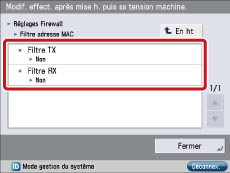 → [Préférences] → [Réseau] → [Réglages Firewall] → [Filtre adresse MAC].