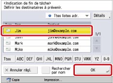 Sélectionner le destinataire de l'indication de fin de tâche → appuyer sur [OK].