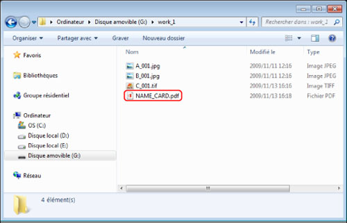 Les cartes de visite lues peuvent être stockées à l'emplacement souhaité, comme l'espace avancé d'une autre machine du réseau ou un support mémoire.