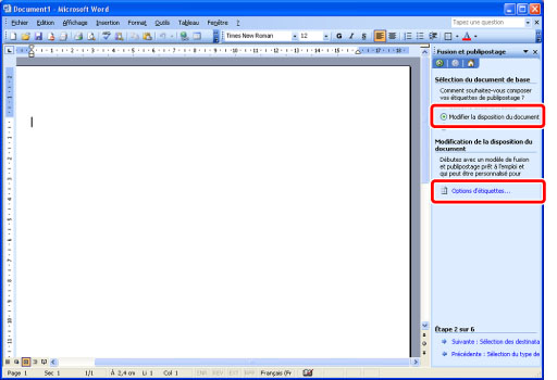 Sélectionner [Modifier la disposition du document] pour [Sélection du document de base] → cliquer sur [Options d'étiquettes].