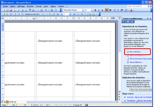 Cliquer sur [Bloc d'adresse] dans [Disposition de vos étiquettes].
