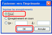 Sélectionner [Tous] pour [Imprimer les enregistrements] → [OK].