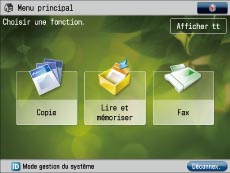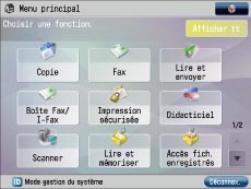 La machine imageRUNNER ADVANCE permet de personnaliser l'écran de l'afficheur tactile. Les opérations s'effectuent plus rapidement en plaçant les boutons des fonctions les plus fréquemment utilisées dans une partie visible de l'écran ou en créant des touches de raccourci pour les combinaisons de fonctions les plus fréquemment utilisées.