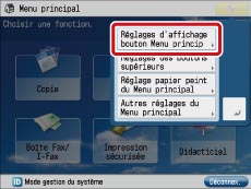 Appuyer sur [Réglages d'affichage bouton Menu princip].