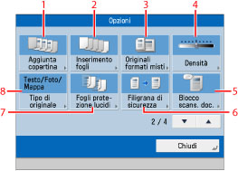 per visualizzare la schermata precedente o successiva. In queste schermate vengono visualizzati tutti i modi di copiatura speciali.