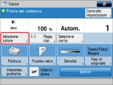 Se [Utilizzo Colore] in [Selezione impostazioni colore per copia] è impostato su 'Off', [Colore] non viene visualizzato. (Vedere "Limitazione dell'utilizzo colore".)