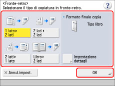 Impostare i modi di copiatura desiderati → premere [Controllo impostazioni].