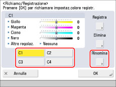 Selezionare un tasto (da [C1] a [C4]) a cui assegnare un nome → premere [Rinomina].