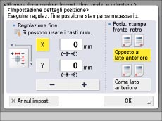 Se si imposta per due tra i modi [Numerazione serie], [Filigrana] o [Stampa data] la stampa alla stessa posizione, viene visualizzato un messaggio che chiede conferma quando si preme