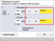 Utilizzare [-] o [+] per impostare il numero di volte in cui l'immagine dovrà essere ripetuta.