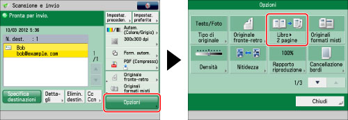 Specificare la destinazione → prermere [Opzioni] → [Libro
