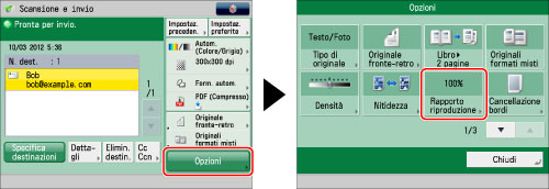 Se si seleziona [Originale lungo] come formato di scansione, i documenti possono essere inviati solo ad un rapporto di zoom del 100%.