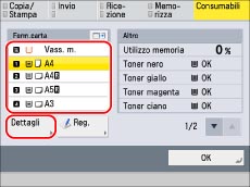 La tabella seguente indica la quantità residua dei materiali di consumo.