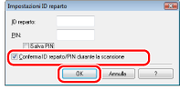 Selezionare [Conferma ID reparto/PIN durante la scansione] → fare clic su [OK].