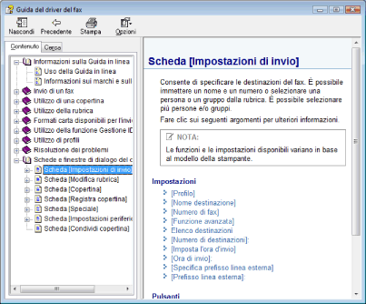 La guida in linea include informazioni addizionali su ciascuna delle funzioni fax. Se non si trovano le informazioni desiderate nello e-Manual, consultare la guida in linea.