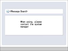 Mit der Funktion "Message Board" (Meldungsanzeige) kann der Administrator Mitteilungen für die Anwender des Systems auf dem Sensordisplay oder im Remote UI anzeigen lassen.