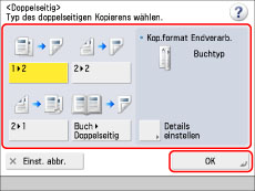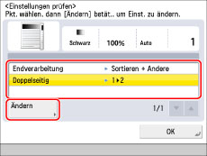 Ändern Sie die Einstellungen → Berühren Sie die Taste [OK].