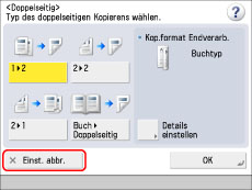 Um eine Funktion zu annullieren, die kein Display mit Einstellungen hat, berühren Sie die Taste [Ändern].