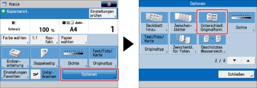 2] zusammen mit [Unterschiedl. Originalform.] verwenden, werden die Kopien als einseitige Kopien auf ihrer Größe entsprechendem Papier ausgedruckt. |