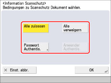 (Vgl. Abschnitt "Festlegen der funktionalen Einstellungen für Scanschutz Dokument".)
