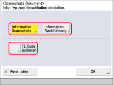 Definieren Sie die einzubettenden Informationen → Berühren Sie die Taste [TL-Code justieren].