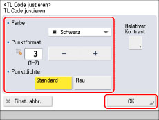 Sie können das Format und die Dichte der Punkte für den in das Dokument einzubettenden TL Code justieren.