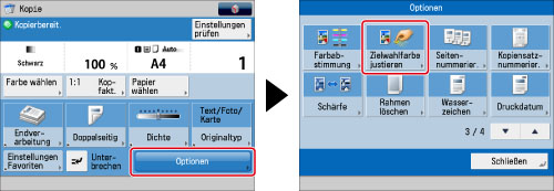 Berühren Sie nacheinander die Tasten [Optionen] → [Zielwahlfarbe justieren].