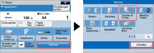 Legen Sie das Original auf das Vorlagenglas. Wenn die Originale im Einzug liegen, können Sie [Drucken & Prüfen] nicht verwenden.